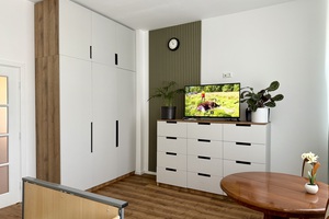 Räumlichkeiten, Aufzug, großem Wohnraum mit ausreichend Platz für Bett,