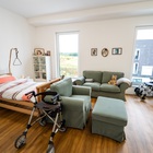 Unsere Bewohner mieten ein eigenes Zimmer, mit eigenem Badezimmer. Hinzu kommen noch Gemeinschaftsflächen, wie der gemütliche Aufenthaltsraum, die Gemeinschaftsküche oder unsere Sofa-Ecke. Insgesamt kommt jeder Mieter somit auf ca. 50-60m2 Wohnfläche.